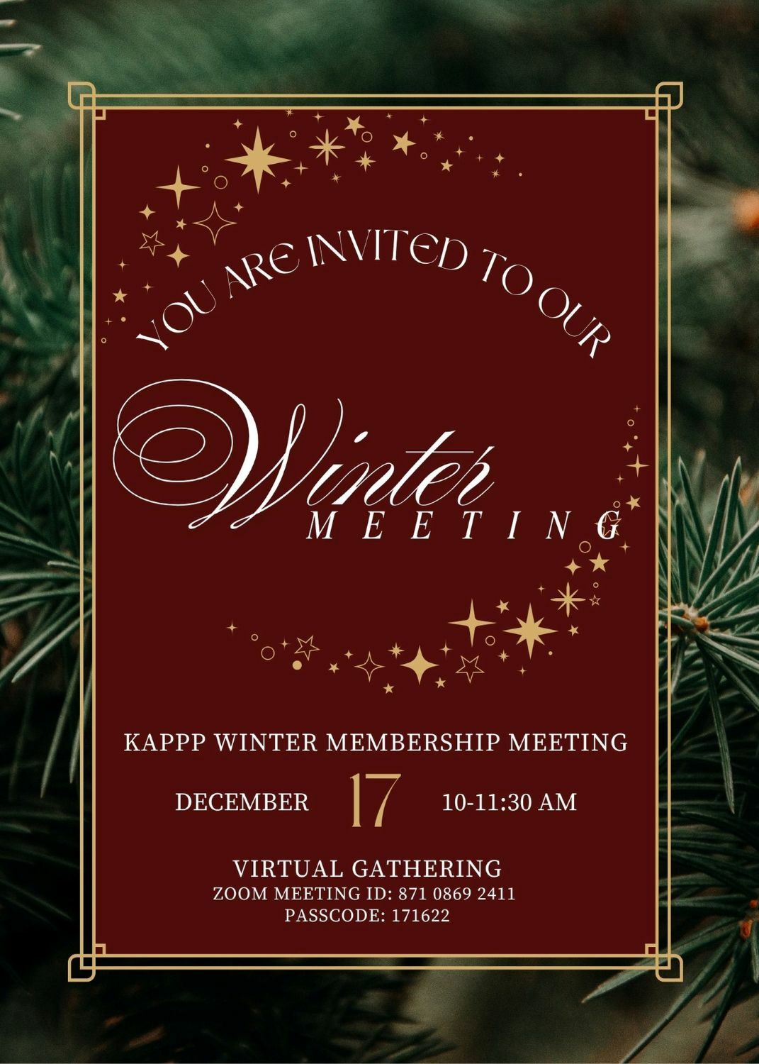 Join us for KAPPP’s 2025 Winter Membership Meeting, an interactive, member-focused virtual gathering where we’ll connect, celebrate, and look ahead together.